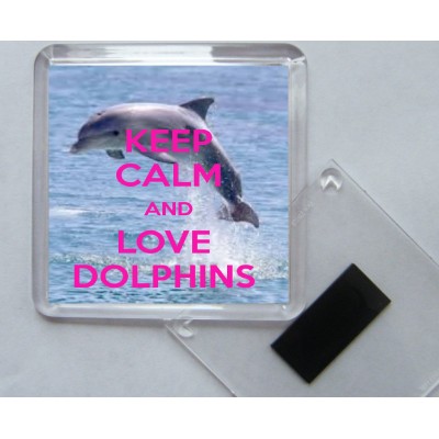Tags: Keep Calm and Love Dolphins - Square Acrylic Fridge Magnet