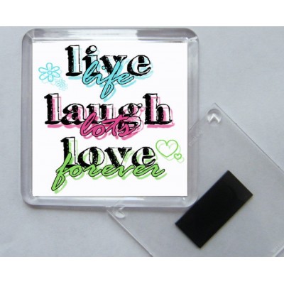Tags: Live Life Laugh Lots Love Forever - Square Acrylic Fridge Magnet