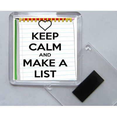 Keep Calm and Make a List - Square Acrylic Fridge Magnet
