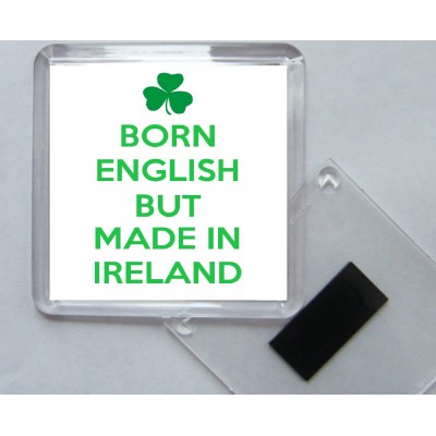 Tags: Born English but Made in Ireland - Square Acrylic Fridge Magnet