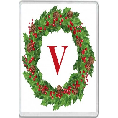 Tags: Christmas Holly wreath with a Red letter V