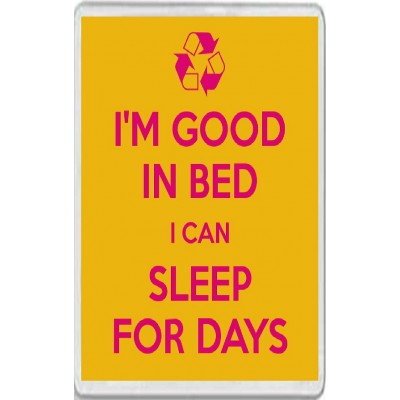 Tags: I'm Good in Bed I can Sleep for Days - Jumbo Fridge Magnet
