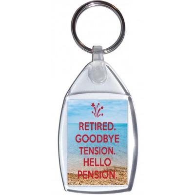 Tags: Retired. Goodbye Tension. Hello Pension. - Keyring