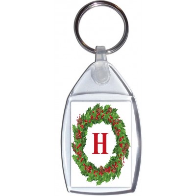 Christmas Holly wreath with a Red letter 'H' - Keyring