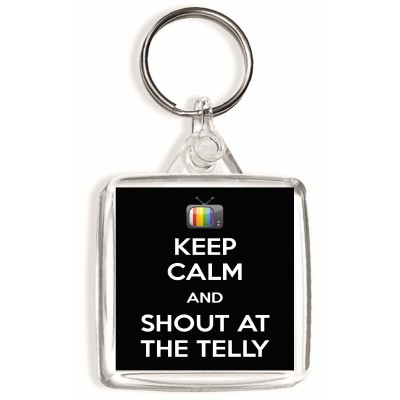 Tags: Keep Calm and Shout at the Telly - Square Keyring