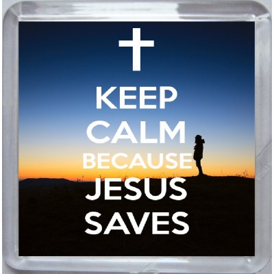 Tags: Keep Calm Because Jesus Saves - Small Coaster