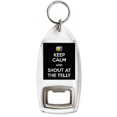 Tags: Keep Calm and Shout at the Telly - Bottle Opener Keyring