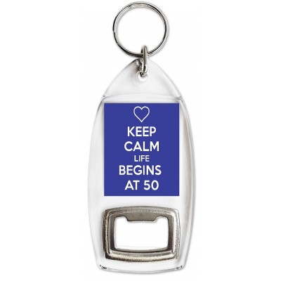 Tags: Keep Calm Life Begins at 50 - Bottle Opener Keyring